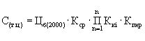 где: С(т.ц) - базовая стоимость работ в текущих ценах; Цб(2000) - базовая цена работ в уровне цен на 01.01.2000 г. (определяется по таблицам раздела 4); Кср - коэффициент, учитывающий полноту выполнения работы (Кср) определяется расчетом по данным долевого значения отдельных операций в общем объеме работ.
