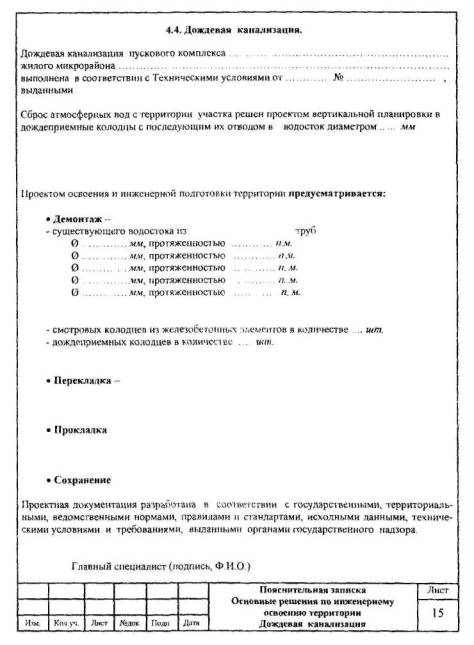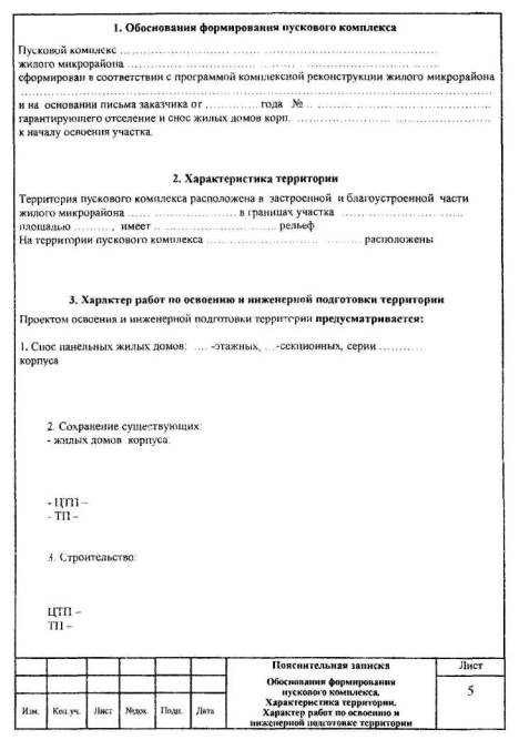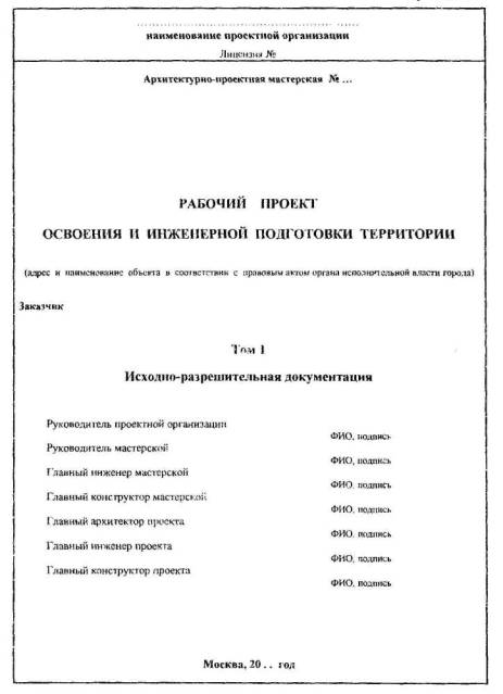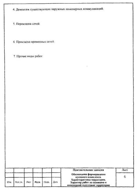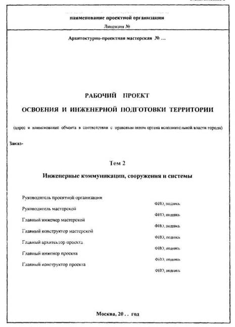 составлению, содержанию и оформлению МРР-2.2.14-06 ОРГАНИЗАЦИЯ ТЕХНОЛОГИЙ 2006 «Пособие но составлению, содержанию и оформлению рабочего проекта освоения и инженерной подготовки территории. МРР-2.2.14-06» разработано специалистами ГУП «НИАЦ» Москомархитектуры (Дронова И.Л., Курман Б.А., Игошин Е.А.) и ОАО «Моспроект» (Перковский В.Ю., Иванова Н.В.). «Пособие» содержит рекомендации по составу, комплектованию и оформлению проектной документации по освоению и инженерной подготовке территории. «Пособие» рекомендовано к изданию в качестве справочного материала 02.11.2006 Рабочей группой по подготовке и введению в действие нормативных документов на проектные работы, разработанных по заказу Департамента экономической политики и развития города Москвы. СОДЕРЖАНИЕВВЕДЕНИЕ«Пособие по составлению, содержанию и оформлению рабочего проекта освоения и инженерной подготовки территории. МРР-2.2.14-06» (в дальнейшем - «Пособие») разработано с учетом опыта подготовки проектными организациями рабочих проектов освоения и инженерной подготовки территории при необходимости сноса расположенных на данном участке существующих зданий и сооружений, вывода предприятий с участка строительства и выноса инженерных коммуникаций Настоящее «Пособие» является справочным материалом и содержит рекомендации по составу, комплектованию и оформлению проектной документации по освоению и инженерной подготовке территории. Также в настоящем «Пособии» представлена примерная форма задания на разработку рабочего проекта освоения и инженерной подготовки территории. I. ОБЩИЕ ПОЛОЖЕНИЯ1.1. Проект освоения и инженерной подготовки территории в качестве отдельного раздела проектной документации разрабатывается на основании пункта 5.6 «Положения о порядке разработки, согласования и утверждения проектной документации для формирования и исполнения городских инвестиционных программ строительства (реконструкции)», утвержденного распоряжением Мэра Москвы от 06 04.1999 № 308-PM, и пункта 6.4 постановления Правительства Москвы от 12 04.2004 года № 659-РП «Об утверждении адресных перечней жилых домов и объектов социальной сферы для разработки градостроительной, исходно-разрешительной и проектно-сметной документации на строительство объектов в 2005-2007 годах» для микрорайонов со сносом устаревшего жилого фонда и необходимостью выноса коммуникаций с площади застройки. 1.2. До разработки проекта освоения и инженерной подготовки территории заказчиком совместно с проектировщиками формируются пусковые комплексы и этапы освоения территорий пусковых комплексов в зависимости от очередности отселения и сноса жилых домов. 1.3. Проект освоения и инженерной подготовки территории разрабатывается на каждый пусковой комплекс застройки в отдельности, по отдельному договору, на основании эскиза застройки жилого микрорайона (квартала), согласованного Главным архитектором города Москвы и инвестором в соответствии с программой волнового переселения и сноса жилых домов. 1.4.В задании на разработку проекта застройки в разделе 3 «Дополнительные требования» делается запись о необходимости разработки проекта освоения и инженерной подготовки территории на пусковые комплексы (очереди) застройки. 1.5. Для разработки проекта освоения и инженерной подготовки территории каждого пускового комплекса составля