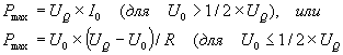 U0 - максимальное напряжение разомкнутой цепи, В;
