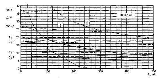Примечание - Если в источнике питания используется токоограничительный резистор самого малого номинала, допустимого согласно таблице А.1 стандарта МЭК 60079-11, то допустимую индуктивность кабеля необходимо рассчитывать, обязательно принимая во внимание сопротивление кабеля и считая L0 равным нулю.