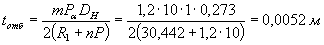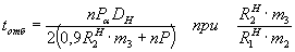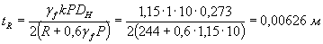 где tотб - толщина стенки трубы или детали трубопровода при которой они должны быть изъяты из эксплуатации, м; Р - рабочее давление в трубопроводе, Па; DH- наружный диаметр трубы или детали трубопровода, м; n - коэффициент перегрузки рабочего давления в трубопроводе, равный R1 - расчетное сопротивление