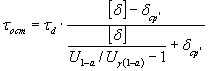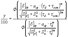 где τd - время эксплуатации трубопровода на момент диагностирования; τост – гамма - процентный остаточный ресурс. Величина γ% выбирается в зависимости от ответственности трубопровода в пределах от 90 до 99. Учитывая, что параметры δ и [δ] имеют нормальное распределение вероятности, получаем в соответствии с (8.11) следующее выражение для вероятности безотказной работы на интервале времени от 0 до τd: где Ф - табулированная функция Лапласа. При S[δ] = 0 это уравнение совпадает с решением [4]. Записав аналогичное выражение для P(τd + τост) и подставив его вместе с (8.12) в(8.11), получим