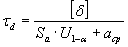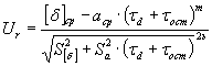 Примечание: для промежуточных значений β величина квантиля Uβ определяется интерполированием. Изложенная методика расчета остаточного ресурса может быть обобщена на случай, когда допускаемое напряжение изменяется с течением времени. По существу, это эквивалентно изменению во времени допускаемого относительного износа [δ]. Будем полагать, что процесс деградации свойств материала детерминирован, т.е. во всех элементах трубопровода изменение допускаемого износа определяется одной и той же функцией времени. Примем, что [δ]ср и S[δ] обозначают среднее значение допускаемого износа и его среднеквадратическое отклонение, определенные в момент диагностирования τd. Тогда их текущие значения при τ ≥ τd определяются по формулам: