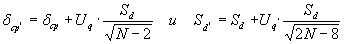 диагностировании в момент времени τd; Sδ и Sd = Ur - квантиль нормального распределения, соответствующий вероятности По уравнениям (8.16) - (8.18) определяется точечное значение гамма - процентного остаточного ресурса. Для получения нижнего интервального значения воспользуемся идущей в запас приближенной оценкой. Будем полагать, что интервальные значения подсчитываются по тем же формулам (8.16) - (8.18), что и точечные, но в них вместо среднего значения и среднеквадратического отклонения текущего износа подставляются их верхние оценки с односторонней доверительной вероятностью q. Значения q изменяются в пределах от 0,8 до 0,99. В этом случае вместо Sd и δср в формулы подставляются следующие приближенные оценки, полученные аппроксимацией точных оценок по РД 09-102-95 при N ≥ 5: