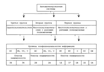 Первая группа включает многопользовательские АС, в которых одновременно обрабатывается и (или) хранится информация разных уровней конфиденциальности. Не все пользователи имеют право доступа ко всей информации АС. Группа содержит пять классов - 1Д, 1Г, 1В, 1Б и 1А.