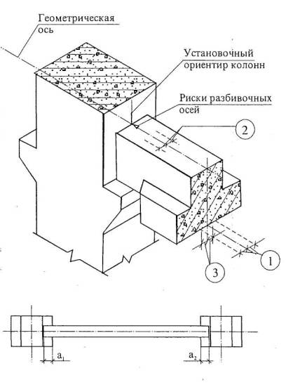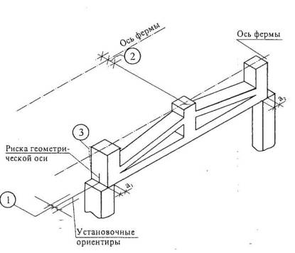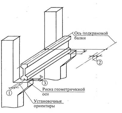 подкрановых балок с установочными ориентирами (рисками геометрических осей или