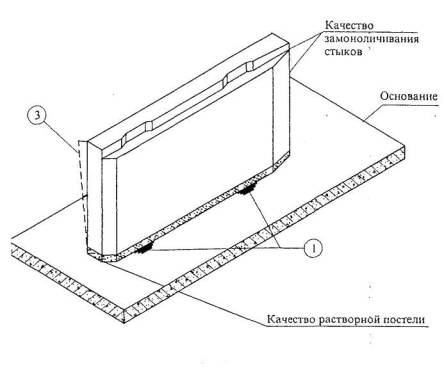 заполнения горизонтальных швов раствором ….. визуально.