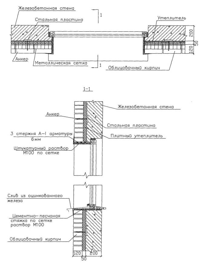 Рисунок 4 - Конструктивное решение армирования кирпичной кладки облицовки угловой части фасада здания Конструктивное решение облицовки оконных проемов приведено на рисунке 5.