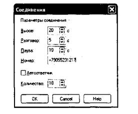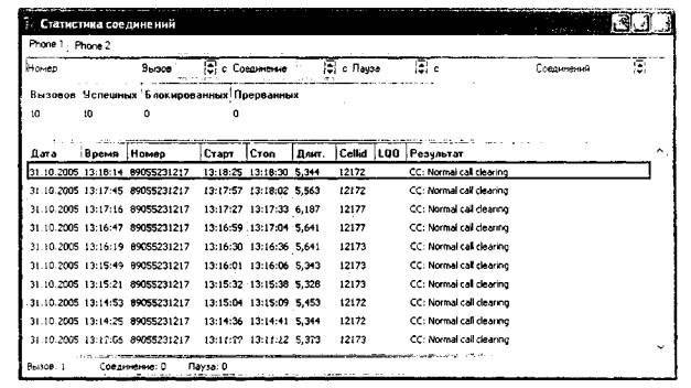 Рис.2 ■ для первого тестового терминала (Phone 1) необходимо указать следующие параметры (См. рис.3 -для времени соединения - 5 с и количества вызовов -10): ■ Вызов - определяет общее время цикла вызова, равное Разговор + Пауза; ■ Разговор - длительность соединения, устанавливается в соответствии с приложением А отдельно для каждого значения длительности соединения; ■ Пауза - временная пауза между вызовами (рекомендуемое значение: 10... 15 с); ■ Номер - телефонный номер второго тестового терминала Phone 2, на который устанавливается вызов; ■ Количество - количество вызовов N, которые осуществляет тестовый терминал на указанный номер, значение устанавливается в соответствии с приложением А, отдельно для каждого значения длительности соединения;
