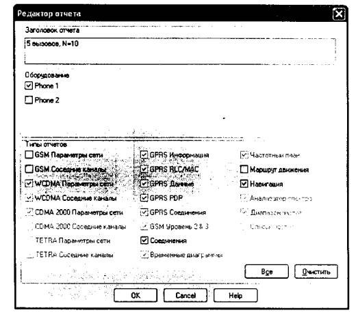 Рис.9 В окне "Редактор отчета" указать название отчета (рекомендуется называть соответственно установленным соединениям), далее установить значки "v" аналогично рис. 9, нажать "ОК".