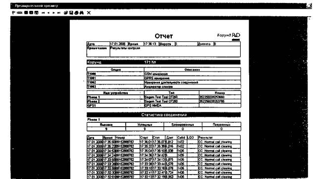 Рис.8 ■ Далее необходимо произвести экспорт данных окна "Статистика соединения" в формат Excel. Для чего необходимо навести манипулятор мышь на данное окно программы, после чего нажать правую клавишу мыши и выбрать в контекстном меню пункт "экспорт". Далее необходимо выбрать формат файла "Excel File OLE", задать имя (например, 5s_10_calls .xls) и путь для сохранения (например "Рабочий стол"), нажать "Сохранить". ■ Для подтверждения достоверности данных, полученных поверителем, необходимо распечатать встроенный в Корунд отчет. Для этого необходимо проследовать по главному меню программы "Файл → "Просмотр" (рис. 9).