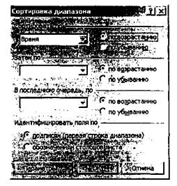Рис. 12 • Проследовать по меню "Данные → Сортировка", установить в подменю "Сортировать по" столбец "Время", "по возрастанию" (рис.13) и нажать "ОК".