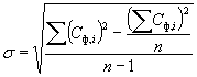 В таблицу 1 включены параметры: σ - среднеквадратическое отклонение, определяемое для анализируемого ряда значений концентрации вещества по формуле
