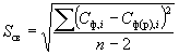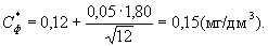 Sсв - среднеквадратическая погрешность результатов проверочных расчетов значений концентрации вещества по найденному уравнению регрессии, определяемая по формуле где Сф(р),i - значение концентрации вещества, полученное по уравнению регрессии по тем данным расхода воды в водотоке, при которых была зафиксирована Сф,i: r - коэффициент корреляции линейной связи между параметрами Сф,i и Qi определяемый по формуле
