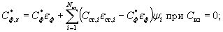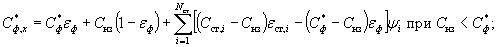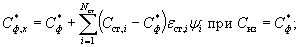 Снз - концентрация вещества, до которой реально может происходить снижение содержания вещества в воде водотока на рассматриваемом участке, мг/дм3; Сст,i - концентрация вещества в i-м выпуске сточных вод (или i-м притоке), рассчитанная по результатам наблюдений; при рассмотрении сточных вод значение Сст,i берется с обеспеченностью 20 % (для строящихся предприятий - по проектным данным); если расход сточных вод непостоянен, то при выборе значения Сст,i следует исходить из количества сбрасываемого вещества Сст,i qi (qi - расход сточных вод в i-м выпуске), рассчитанного с той же обеспеченностью; в устьевой части притока значение Сст,i рассчитывается как фоновая концентрация по 5.4-5.6; Nст - общее количество учтенных источников вещества на рассматриваемом участке водотока; εст,i - безразмерный коэффициент, учитывающий неконсервативность вещества, поступающего в водоток через i-й выпуск сточных вод (или i-й приток); εф