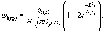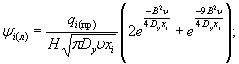 для расчета фоновой концентрации вещества qi расход воды в i-м источнике загрязняющего вещества, м3/с; qi(л) - расход воды в i-м левобережном источнике, м3/с; qi(пр) - расход воды в i-м правобережном источнике, м3/с; Dу - коэффициент поперечной дисперсии, м2/с. Если при расчете по формулам (30), (33) для какого-либо источника вещества окажется, что ψi менее qi/(Q+qi) (где Q - расход воды в реке в начальном створе наблюдений; qi - расход воды в i-м источнике), то следует принимать, что ψi = qi/(Q+qi). Если при расчете по формулам (31), (32) окажется, что ψi более Q/(Q+qi), то следует принимать, что ψi = Q/(Q+ qi). Далее,