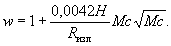 б) при отсутствии сведений о величинах Rизд и Нmах где с - значение коэффициента Шези; g - ускорение свободного падения, равное 9,8 м/с2; М - коэффициент, зависящий от с (при 10 < с < 60 М = 0,7с + 6; при с ≥ 60 М = 48); Кобщ - поправочный множитель, который для извилистых участков водотоков позволяет учитывать поперечную циркуляцию в потоке и его кинематическую неоднородность (для сравнительно прямых русел Кобщ=1); φ - коэффициент извилистости реки, представляющий собой отношение длины участка, измеренной по фарватеру, к длине этого же участка, измеренной по прямой (для определения φ можно использовать крупномасштабную карту). Коэффициент Кобщ вычисляют по уравнению lg Кобщ = 0,25γн (1 + 0,54 w) + 0,589 w - 0,356, (50) где