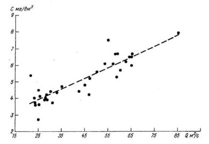расчетном расходе воды, по уравнению регрессии рассчитывают фоновую