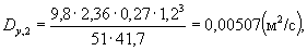 По формулам (53), (49) рассчитаем параметры с и Dy на участке реки до и ниже впадения притока Т: