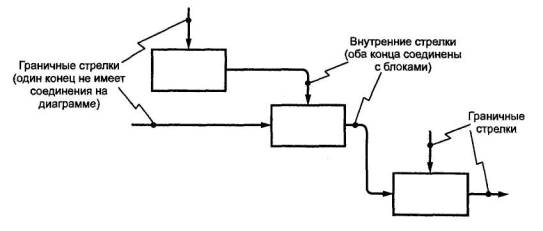 Рисунок 18 8 Отношения между блоками диаграммы и другими диаграммами (окружающей средой)Все описанные выше отношения отображаются внутренними стрелками, то есть такими, которых оба конца связаны с блоками диаграммы. Отношения между блоками диаграммы и другими диаграммами, являющимися по отношению к рассматриваемой диаграмме окружающей среде (окружением), описываются граничными стрелками (см. 2.7). Обе ситуации отражены на рисунке 19.