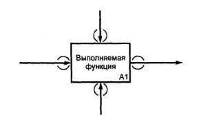 Рисунок 38 Схематическое изображение связей преобразующего блока в соответствии с соглашениями системы IDEF0 показано на рисунке 38. Ограничительная и предписывающая информация изображается стрелками, присоединяемыми к блоку на стороне управления, а описательная информация поступает на вход блока и формируется на его выходе, отображаясь стрелками входа и выхода соответственно. Материальный поток и описывающий его информационный поток везде, где это не вызывает недоразумений, можно изображать одной стрелкой. 11.2 Классификация функций, моделируемых блоками IDEF0Практика построения функциональных моделей требует введения классификации явлений и событий, отображаемых в моделях. Такая классификация облегчает выбор глубины декомпозиции моделируемых систем и способствует выработке единообразных подходов и приемов моделирования в конкретных предметных областях. В настоящих рекомендациях предлагается классификация, ориентированная на достаточно широкий круг организационно-экономических и производственно-технических систем. Классификация делит все функции таких систем на четыре основных и два дополнительных вида. Каждая рубрика в классификации представляет собой класс преобразующих блоков, экземпляры которого возникают и используются при моделировании конкретной системы. а) Основные виды функций: 1 Деятельность (синонимы: дело, бизнес) - совокупность процессов, выполняемых (протекающих) последовательно или/и параллельно, преобразующих множество материальных или/и информационных потоков во множество материальных или/и информационных потоков с другими свойствами. Деятельность осуществляется в соответствии с заранее определенной и постоянно корректируемой целью, с потреблением финансовых, энергетических, трудовых и материальных ресурсов, при выполнении ограничений со стороны внешней среды. В модели IDEF0 деятельность описывается блоком А0 на основной контекстной диаграмме А-0. При моделировании крупных, многопрофильных структур (фирм, организаций, предприятий), которые по своему статусу занимаются различными видами деятельности, последние представляют собой различные экземпляры класса «деятельность» и могут найти отражение в дополнительной контекстной диаграмме А-1. В этом случае общая модель сложной структуры будет состоять из ряда частных моделей, каждая из которых относится к конкретному виду деятельности. 2 Процесс (синоним: бизнес-процесс) - совокупность последовательно или/и параллельно выполняемых операций, преобразующая материальный или/и информационный потоки в соответствующие потоки с другими свойствами. Процесс протекает в соответствии с управляющими директивами, вырабатываемыми на основе целей деятельности. В ходе процесса потребляются финансовые, энергетические, трудовые и материальные ресурсы и выполняются ограничения со стороны других процессов и внешней среды. 3 Операция - совокупность последовательно или/и параллельно выполняемых действий, преобразующих объекты, входящие в состав материального или/и информационного потока, в соответствующие объекты с другими свойствами. Операция выполняется: а) в соответствии с директивами, вырабатываемыми на основе директив, определяющих протекание процесса, в состав которого входит операция; б) с потреблением всех видов необходимых ресурсов; в