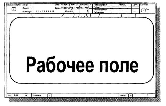 Рисунок 35 21 Каждая диаграмма IDEF0 изображается на стандартном бланке, именуемом мастер-страницей. Бланк снабжен верхним и нижним штампами, содержащими информацию как о конкретной диаграмме, так и в целом о проекте, в состав которого входит диаграмма. Форма бланка с расшифровкой всех полей штампов приведена в приложении А. 10 Ссылочные выражения (коды)Ссылочные выражения (коды) присваиваются всем элементам модели: диаграммам, блокам, стрелкам и примечаниям. Ссылочные выражения затем могут использоваться в различных контекстах для точного указания на нужный элемент модели. Основное ссылочное выражение - узловой номер, который появляется там, где выполняется декомпозиция функционального блока и создается его подробное описание на дочерней диаграмме. Все остальные ссылочные коды базируются на узловых номерах. 10.1 Номера блоковКаждому блоку на диаграмме присваивается номер, помещаемый в нижнем правом внутреннем углу блока. Эта система нумерации необходима для однозначной идентификации блоков в пределах диаграммы и для генерации узловых номеров. Эти номера используются также для ссылок на блоки в тексте и глоссарии. На контекстной диаграмме А-0 единственному блоку присваивается номер 0 (нуль). На всех других диаграммах блоки нумеруются от 1 до 6, начиная с верхнего левого блока (при их диагональном размещении) и кончая нижним правым блоком. Если некоторые блоки на диаграмме размещены не по диагонали, то сначала нумеруются «диагональные» блоки (также начиная с левого верхнего блока), а затем - «недиагональные» блоки, начиная с нижнего правого против часовой стрелки. 10.2 Узловые номераУзловой номер базируется на положении блока в иерархии модели. Обычно узловой номер формируется добавлением номера блока к номеру диаграммы, на которой он появляется. Например узловой номер блока 2 на диаграмме А25-А252. Все узловые номера IDEF0 начинаются с заглавной буквы, например «А». Когда родительский блок подробно описывается дочерней диаграммой, узловые номера родительского блока и дочерней диаграммы совпадают. Контекстные диаграммы и дочерняя диаграмма верхнего уровня - исключения в вышеуказанной схеме узловой нумерации. Каждая модель IDEF0 имеет контекстную диаграмму верхнего уровня - диаграмму А-0. Эта диаграмма содержит единственный «высший блок», который является уникальным родителем всей модели и несет уникальный номер 0 (нуль) и узловой номер А0. Каждая модель IDEF0 должна также иметь по крайней мере одну дочернюю диаграмму, содержащую декомпозицию блока А0 на 3 ... 6 дочерних блоков. Этим блокам присваиваются уникальные узловые номера А1, А2, A3, ..., А6. Таким образом, последовательность [А0, А1, . . ., А2, . . ., A3, . . .] начинает нумерацию узлов для любой модели. Например, модель может иметь следующие узловые номера: