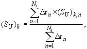 где: Δτn - длительность n-ого периода контроля (длительность экспонирования аэрозольного фильтра); Nk - число замеров значений объемной активности радионуклида U на k-ом рабочем месте; (SU)k,n - n-й результат определения объемной активности радионуклида U на k-ом рабочем месте. При наличии достаточных данных о радиационной обстановке на рабочих местах и в соответствии с п. 75 МУ26, величину (SU)k,n определяют с учетом вариабельности радиационной обстановки на рабочих местах, принимая во внимание статистические закономерности ее формирования: