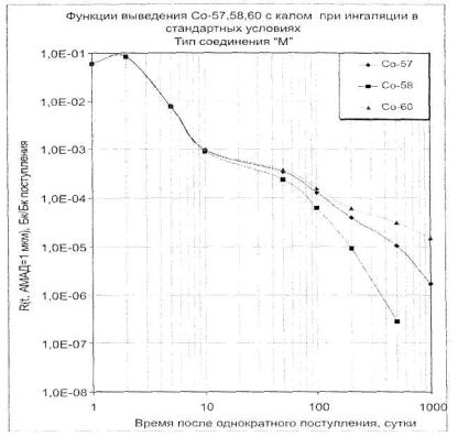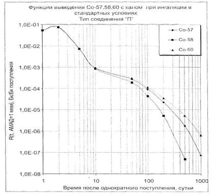 Функции выведения Со-57, 58, 60 с калом при ингаляции в стандартных условиях