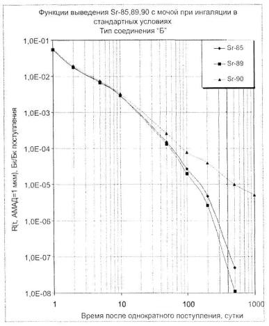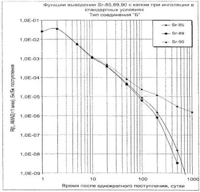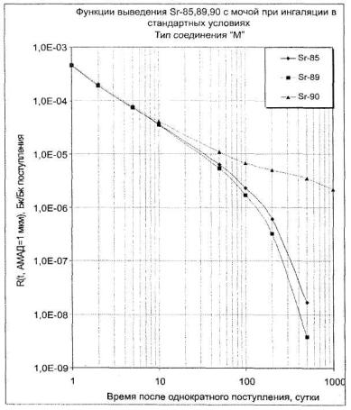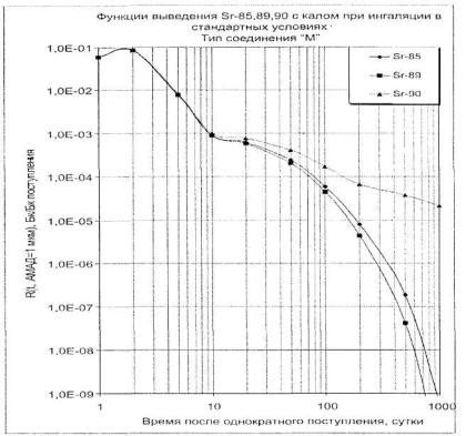 Стронций Функции выведения Sr-85, 89, 90 с мочой при ингаляции в стандартных условиях