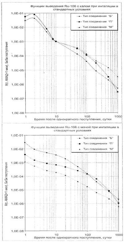 Рутений Функции выведения Ru-106 с мочой при ингаляции в стандартных условиях