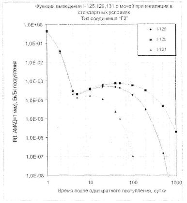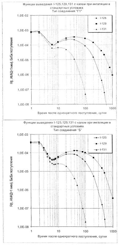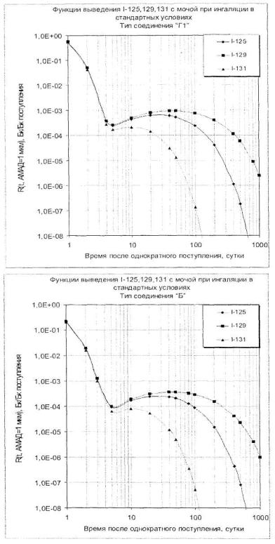 Йод Функции выведения I-125, 129, 131 с мочой при ингаляции в стандартных условиях
