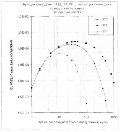 Функции выведения I-125, 129, 131 с калом при ингаляции в стандартных условиях