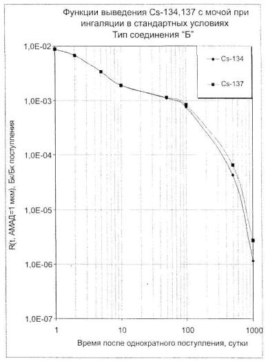 Цезий Функции выведения Cs-134, 137 с мочой при ингаляции в стандартных условиях