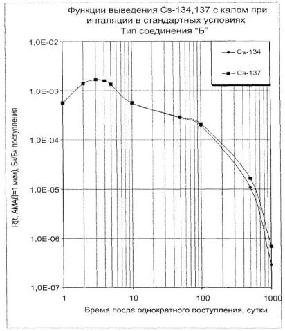 Функции выведения Cs-134, 137 с калом при ингаляции в стандартных условиях