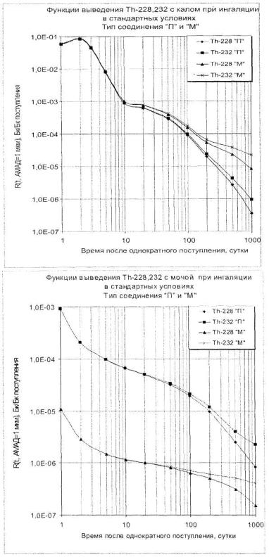 Торий Функции выведения Th-228, 232 с мочой при ингаляции в стандартных условиях
