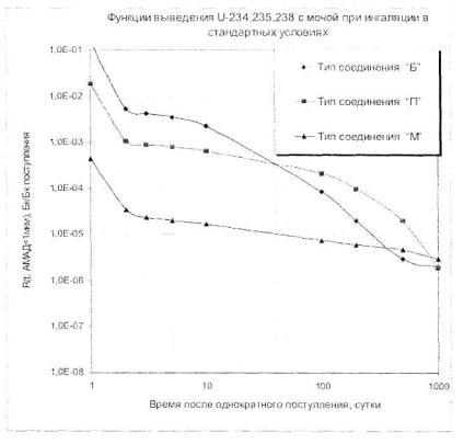 Уран Функции выведения U-234, 235, 238 с мочой при ингаляции в стандартных условиях