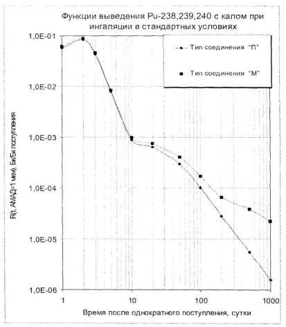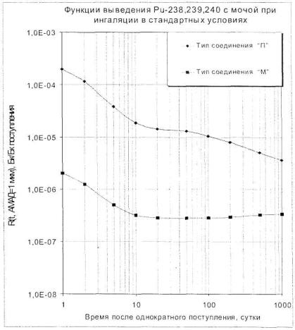 Плутоний Функции выведения Pu-238, 239, 240 с мочой при ингаляции в стандартных условиях