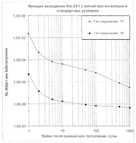 Америций Функции выведения Am-241 с мочой при ингаляции в стандартных условиях