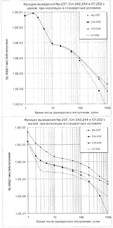 Нептуний, кюрий и калифорний Функции выведения Np-237, Cm-242, 244 и Cf-252 с мочой при ингаляции в стандартных условиях