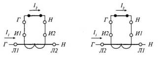 Рис. 7. Полярность подключения обмоток ТТ и токовой цепи счетчика: а - Л1-И1-Г- однополярны; б - Л2-И2-Г- однополярны; Л1Л2 - линия; И1И2 - измерение 3.СПРАВОЧНЫЕ ДАННЫЕ СЧЕТЧИКОВНекоторые типы счетчиков, применяемых на энергообъектах ОАО «Тверьэнерго», и их технические характеристики приведены в табл. 1. Справочные данные счетчиков