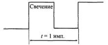 Рис. 21. Один импульс светодиодного индикатора Измерение мощности, подводимой к счетчику. Измерения тока в токовых цепях счетчика выполняют с помощью токоизмерительных клещей в диапазонах от 25 мА до 5 А, от 5 до 500 А. Зная значения напряжения, тока и cosφ, вычисляют мощность, подводимую к счетчику, по формулам: Рсч = UфIcosφ - для однофазного счетчика;
