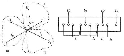 Загрузка реактивной мощностью линий и трансформаторов уменьшает пропускную способность сети и не позволяет полностью использовать установленную мощность генератора. Угол фазового сдвига - фазовый сдвиг между электрическим напряжением и током, град. При индуктивном характере нагрузки ток по фазе отстает от напряжения (рис. 1). При емкостном характере нагрузки ток по фазе опережает напряжение. Вектор - условное графическое изображение параметра по значению и направлению. Векторная диаграмма - условное графическое изображение векторов тока и напряжения. На рис. 2 изображено положение векторов токов и напряжений в трехфазной сети. Порядок чередования фаз напряжений - может быть прямым или обратным. Определяется фазоуказателем И517М или прибором ВАФ-85 на колодке зажимов счетчика. Прямой порядок чередования фаз напряжений - ABC, BCA, CAB (по часовой стрелке, рис. 3). Обратный порядок чередования фаз напряжений - АСВ, СВА, ВАС, создает дополнительную погрешность и вызывает самоход индукционного счетчика активной энергии. Счетчик реактивной энергии при обратном порядке чередования фаз напряжений и нагрузки вращается в обратную сторону. Обозначение