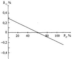 для находящихся в эксплуатации на подстанциях типовых ТТ с номинальным вторичным током I2ном = 5А находится в пределах Sном = 2,5 + 100 В·А или Zном = 0,1 ¸ 4 Ом. Зависимость погрешности напряжения ТН δU от мощности вторичной нагрузки трансформатора Р2 приведена на рис. 32 [18]. Погрешности ТН не должны выходить за пределы допустимых для данного класса точности при условии, что нагрузка составляет 25 - 100 % номинальной при cosφ = 0,8 (инд). Если нагрузка превышает номинальную мощность или меньше ее, то класс точности ТН становится более грубым (см. приложение 2). Погрешность из-за потери напряжения в линии соединения счетчика с ТН δл характеризуется разностью абсолютных значений напряжений на зажимах вторичной обмотки ТН и на колодке зажимов счетчика (выражается в процентах). Эта погрешность имеет отрицательный знак. Потери напряжения зависят от сечения и длины проводов (кабелей), а также от мощности нагрузки ТН. Погрешность счетчика δс зависит от значения тока и cosφ, а также от формы кривой тока нагрузки, несимметрии напряжений, обратной последовательности фаз напряжений, температуры и других факторов [1 - 3].