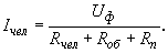 Более подробные сведения о нормируемых стандартами погрешностях ТТ, ТН, индукционных и электронных счетчиках приведены в [15]. 12. МЕРЫ БЕЗОПАСНОСТИ ПРИ ЭКСПЛУАТАЦИИ СЧЕТЧИКОВ ЭЛЕКТРИЧЕСКОЙ ЭНЕРГИИ В ЭЛЕКТРОУСТАНОВКАХ НАПРЯЖЕНИЕМ 380/220 ВДействие электрического тока па организм человека [16]. Проходящий через организм человека электрический ток производит термическое, электротермическое и биологическое воздействия. Значение электрического тока, проходящего через тело человека, является основным фактором, обуславливающим исход поражения: 0,6 - 1,5 мА - человек начинает ощущать действие проходящего через него переменного тока; 10 - 15 мА - неотпускающий ток, человек не может самостоятельно оторвать руку от электропроводов; 25 - 50 мА - происходит мощное сокращение дыхательных мышц, через несколько минут наступает смерть от удушья; 50 - 200 мА - возникает беспорядочное сокращение и расслабление мышцы сердца (фибрилл) с частотой 400 - 600 раз в минуту - фибрилляция. Кровообращение прекращается. В четырехпроводной сети с заземленной нейтралью трансформатора (рис. 34) цепь тока, проходящего через тело человека, включает в себя сопротивление тела человека Rчел, его обуви Rоб, пола Rп. Тогда ток, проходящий через тело человека, определяется из выражения