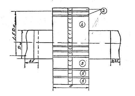 Отбраковочные толщины даны для труб и отводов, находящихся в печи. Отбраковочные толщины труб и отводов, находящихся вне зоны печи (огня) принять в соответствии с ИТН-77. Отбраковочные значения толщин стенок труб и отводов должны определяться путем суммирования приведенных в таблице значений, величин возможного науглероженного слоя внутренней поверхности и коррозионного износа до следующей ревизии змеевиков. Отбраковку элементов змеевиков по другим критериям отбраковки (Дн, НВ и т.п.) производить в соответствии с требованиями ИТН-77. Элементы змеевиков, достигшие отбраковочных критериев, необходимо заменять. 2. ПРЕДВАРИТЕЛЬНЫЙ АНАЛИЗ СОСТОЯНИЯ ЗМЕЕВИКОВ ПЕЧЕЙ, ИХ ОБСЛЕДОВАНИЕ НА МОМЕНТ НАРАБОТКИ ПРОЕКТНОГО (РАЗРЕШЕННОГО) СРОКА СЛУЖБЫ, ВЫРЕЗКА ОБРАЗЦОВ МЕТАЛЛАПредварительный анализ состояния змеевиков печей за время эксплуатации, их обследование за 12 тыс. ч. до наработки проектного (разрешенного) срока службы в периоды ремонта установок и вырезка образцов должны быть выложены в объеме, предусмотренном настоящим разделом. 2.1. Собрать, обобщить и проанализировать следующие материалы: - проектные и фактические сведения по змеевикам печи (организация - проектировщик, дата проектирования и номер заказа (проекта), характеристики печи, схемы змеевиков и их обвязка, материальное и конструктивное исполнение, параметры работы, расчетный срок службы); - сведения (при наличии) по изготовлению змеевиков (завод-изготовитель, дата изготовления, паспорта на змеевики с чертежами общего вида, материальное исполнение, копии сертификатов и актов контрольных испытаний металла труб и отводов, возможные отклонения от проекта при изготовлении, а также сведения по сварным соединениям: копии сертификатов на электроды, результаты испытаний сварных соединений); - дата ввода печи в эксплуатацию и фактическое время работы элементов змеевиков в тысячах часах (по возможности, указать эффективный фонд работы печи по годам); - количество проведенных ремонтов (плановых, аварийных), причины аварийных выходов змеевиков из строя; - перечень, количество и причины замены элементов змеевиков по годам за время их эксплуатации; - результаты и точки замеров толщин стенок элементов змеевиков по годам их проведения. Как минимум, необходимо проанализировать сведения о замерах толщин стенок труб и отводов вначале эксплуатации, результаты последних и один-два промежуточных замеров; - скорости коррозии элементов змеевиков; - результаты проверки наружных диаметров труб, замеров твердости элементов змеевиков из подкаливающихся сталей (I5X5M, I5X5M-У, 12Х8ВФ, 15Х5ВФ, I2X2MI, I5XM и т.п.) по годам их проведения; - результаты стилоскопирования или химического анализа всех элементов змеевиков, включая и сварные соединения, из легированных сталей; - результаты исследований металла элементов змеевиков (химический состав, механические свойства, структура, науглероживание и т.п.) если таковые проводились; - сведения о перегреве металла в процессе эксплуатации и паровоздушного выжига кокса (при их наличии). По змеевикам, оборудованным поверхностными термопарами, необходимо проанализировать сведения о фактических температурах стенок; - наличие и величину отложений на внутренней поверхности труб (отводов), окалины на наружной поверхности. 2.2. Провести обследование (ревизию) состояния эле