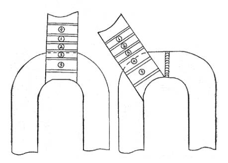 Схема вырезки заготовок для стандартных образцов из радиусных участков гибов (развертка)