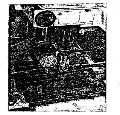 Черт. 2, а 3.4.2. Определение отклонения от прямолинейности движения каретки поперечного перемещения. Отклонение от прямолинейности движения каретки поперечного перемещения в единицах длины определяйте, используя методику, изложенную в пп. 3.4.1.1 и 3.4.1.2 настоящих методических указаний, но лекальную линейку располагайте параллельно направлению движения каретки поперечного перемещения (черт. 2 а, 2 б). Отклонение от прямолинейности на длине 100 мм не должно превышать 0,001 мм в горизонтальной плоскости и 0,003 мм в вертикальной плоскости. Отклонение от прямолинейности движения каретки поперечного перемещения в вертикальной плоскости в угловых единицах определяйте по методике, изложенной в п. 3.4.1.3 настоящих методичёских указаний; значение отклонения не должно превышать 10".