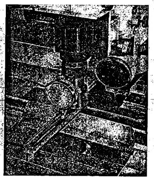 Черт. 8 Установите оптический квадрант на основании кронштейна К4 который закрепите на направляющих колонки вместо визирной системы; колонка при этом должна находиться в вертикальном положении (нулевой отсчет по шкале колонки), а квадрант должен быть выставлен в горизонтальное положение по уровню. Отсчитайте первое показание. Наклоните колонку на 6°, восстановите по уровню горизонтальное положение квадранта и отсчитайте второе показание. Сравните показания шкалы колонки с разностью показаний, полученных по квадранту. Аналогичным способом определите соответствие показаний шкалы колонки показаниям квадранта при наклоне ее на 12°30'. Поверку проводите при наклоне колонки вправо и влево. Показания шкалы колонки должны отличаться от действительных значений углов наклона по квадранту не более чем на ±5'. 3.4.11. Определение смещения изображения лезвия ножа при наклоне колонки на 12°30' в обе стороны от вертикального положения. Установите в центрах 1 (черт. 9) прибора контрольный валик 2 в тубусе визирной системы при этом должен находиться объектив 3х, установите бинокулярную насадку. Установив визирную систему на резкое изображение лезвия ножа валика и осторожно вращая валик в центрах, убедитесь, что изображение лезвия ножа остается резким при повороте валика на 180°. Совместите при вертикальном положении колонки наблюдаемое в поле визирной системы изображение лезвия ножа валикам вертикальной (центральной) линией сетки угломерной головки. Наберите на цифровой клавиатуре пульта управления цифру 3, нажмите клавиши 1, 2, ВВОД. Повторите наводку трижды, каждый раз нажимая клавиш ВВОД.