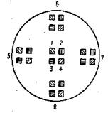 Проверку осуществляйте с бинокулярной насадкой и всеми объективами в центре и на краях поля системы, смещая изображение, шкалы на края поля микрометрическим, винтом поперечной подачи. 3.4.13. Определение отклонения от параллельности горизонтальной, линии штриховой сетки угломерной головки визирной системы направлению движения каретки продольного перемещения. Проверку производите при нулевом показании по шкале угломерной головки. Регулировочными винтами предметного стола установите изображение ребра поверочной линейки (поверочного угольника) параллельно направлению движения каретки продольного перемещения. В случае несовпадения горизонтальной штриховой линии сетки с изображением ребра линейки (угольника) добейтесь совпадения, разворачивая штриховую сетку, снимите отсчеты по шкале угломерной головки. Произведите не менее трех таких совмещении. Вычислите среднее арифметическое значение полученных отсчетов, которое и определяет отклонение от параллельности горизонтальной линии штриховой сетки угломерной головки направлению движения каретки продольного перемещения. Оно не должно превышать ± 1΄. 3.4.14. Определение несовпадения точки пересечения штриховых линии сетки угломерной головки с осью ее вращения. Поместите поверочную линейку (поверочный угольник) на плоский предметный стол так, чтобы при нулевом показании по шкале угломерной головки вертикальная центральная линия штриховой сетки совпала с изображением ребра линейки (угольника), и нажмите клавиши 3, ВВОД на пульте управления. Повернув сетку на 180°, снова совместите вертикальную штриховую линию сетки с изображением ребра линейки (угольника) и нажмите клавиш ВВОД. Цифропечатающее устройство отпечатает значение несовпадения по координате X точки пересечения штриховых линий сетки с осью ее вращения. Произведите не менее трех измерений и нажмите клавиш 4, цифропечатающее устройство отпечатает среднее арифметическое значение результатов измерения. Аналогично определите несовпадение в другом направлении, устанавливая для этого линейку (угольник) параллельно направлению движения каретки продольного перемещения. Среднее арифметическое значение не должно превышать 0,001 мм. 3.4.15. Определение освещенности экранов визирной и угломерной систем. Проверку производите с объективом 3х при максимально открытой диафрагме осветительной системы. Предварительно отцентрируйте лампу визирной системы так, чтобы поле зрения освещалось равномерно. Кронштейн с визирной системой установите в положение, соответствующее фокусировке прибора на плоскость центров. Напряжение на лампе визирной системы должно быть 8 В. Накладывайте фотоэлемент на плоскость экрана последовательно в центре его и по краям, каждый раз снимая отсчет по шкале люксметра. Освещенность должна быть не менее 30 лк на любом поверяемом участке экрана. Допускается неравномерность освещения в пределах 7 лк. Аналогично проверьте освещенность экрана угломерной головки. Освещенность должна быть не менее 5 лк. 3.4.16. Проверка соответствия диаметров отверстий диафрагмы осветительной системы показаниям шкалы на регулировочном кольце. Для поверки используйте осветительную насадку 3-5-10х. Установите на предметный стол коллиматор, на матовом стекле которого нанесены допусковые окружности. Устанавливая последов