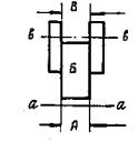 где а и b - поправки к размерам правого и левого измерительных ножей соответственно, взятые из свидетельства о поверке ножей; α- номинальный угол профиля резьбы. Погрешность Δ5 не должна быть больше допускаемых пределов, указанных в табл. 3. 3.4.47. Определение погрешностей Δ6' и Δ6" прибора при измерении диаметра сквозного отверстия с применением перфлектометра. Погрешности Δ6' и Δ6" определяйте с помощью скобы (черт. 15) или но образцовому кольцу, при этом применяйте бинокулярную насадку, объектив 3х, осветительную насадку с индексом «П» осветительную диафрагму устанавливайте максимальной. Для определения погрешности выполните следующие операции: Включите призму двойного изображения, закрепите на оправе объектива насадку с плоскопараллельной пластиной. Установите шкалу микрометрической фокусировки визирной системы в нулевое положение. Перемещая кронштейн с визирной системой, получите резкое изображение двух цветных перекрестий, наблюдаемых в поле зрения визирной системы. Добейтесь наилучшей резкости изображения микрометрической фокусировкой прибора. Разворачивая насадку с плоскопараллельной пластиной вокруг вертикальной оси и действуя регулировочными винтами насадки, совместите цветные изображения перекрестий. Установите рабочую поверхность стола СТ-23 с помощью уровня из комплекта прибора в горизонтальное положение. Для определения погрешности Δ6' при измерении размера скобы в продольном направлении установите на рабочей поверхности стола скобу, составленную из образцовых концевых мер длины 4-го разряда. Расположение мер в скобе должно быть таким, чтобы с одного конца получился наружный размер А, а с другого конца - внутренний размер В. Скобу на столе расположите так, чтобы сечение «b-b» примерно совпадало с направлением движения каретки продольного перемещения. Приводя поочередно сечения «a-a» и «b-b» скобы на линию измерения, установите перекосы скобы относительно линии измерения. Для устранения перекоса в горизонтальной плоскости, вращая стол вокруг вертикальной оси, добейтесь, чтобы измерительные плоскости скобы были ориентированы перпендикулярно к направлению движения каретки продольного перемещения. Контроль осуществляйте, наблюдая в поле зрения визирной системы предварительно совмещенные цветные прямые, которые, если перекос устранен, должны быть параллельны вертикальной линии перекрестия сетки. Наклон скобы относительно линии измерения в вертикальной плоскости устраняйте изменением наклона стола с помощью его регулировочных винтов. Контролируйте устранение перекоса, наблюдая в поле зрения совмещенные цветные прямые, которые должны оставаться совмещенными при вертикальном перемещении стола на всю высоту скобы. Если при этом цветные линии разойдутся, что свидетельствует о наклоне скобы, то одну половину смещения устраните с помощью микрометрического винта каретки продольного перемещения, а другую половину - при помощи одного из регулировочных винтов стола. Регулировку повторяйте до устранения перекоса. Измерьте поочередно размеры А и В скобы в сечениях «а-а» и «b-b» следующим образом: совместите изображения перекрестия штриховой сетки, полученные от одной из сторон концевой меры в измеряемом сечении; нажмите клавиши 3 и ВВОД на пульте управления; передвигая каретку продольного перемещения